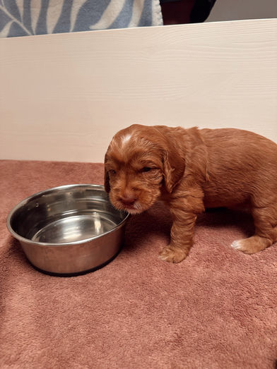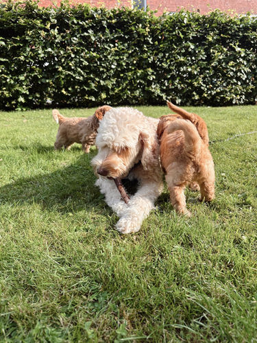 Wilma er parret med Kikki´s Lovly Olly, en Australian Cobberdog fra Kennel NOR. Pelsen hans er gylden og er også av typen fleece. Du kan lese mer om han ved å trykke på navnet hans.
